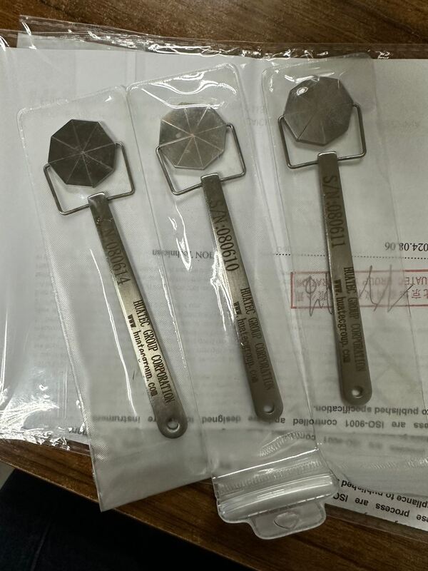مقياس الفطيرة هو أداة للتحقق بسرعة من اتجاه التدفق المغناطيسي على السطح. إنه مصنوع من ثمانية أجزاء حديدية، ملحومة في قطعة واحدة، مما يوفر نمطًا نجميًا من الانقطاعات غير الحديدية. توفر الانقطاعات الخطية الثمانية مؤشرات في جميع الاتجاهات. يستخدم عادة مع المساحيق الجافة لفحص الأقواس، يمكن حمل مقياس الفطيرة بأي زاوية وسوف يولد مؤشرات عمودية على اتجاه التدفق المغناطيسي. مقبض غير حديدي مع محور دوران.